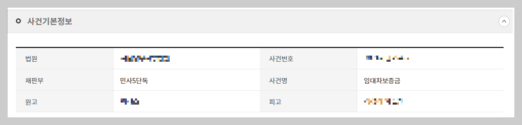 사건기본정보에는 법원, 사건번호, 원고 등을 볼 수 있습니다.