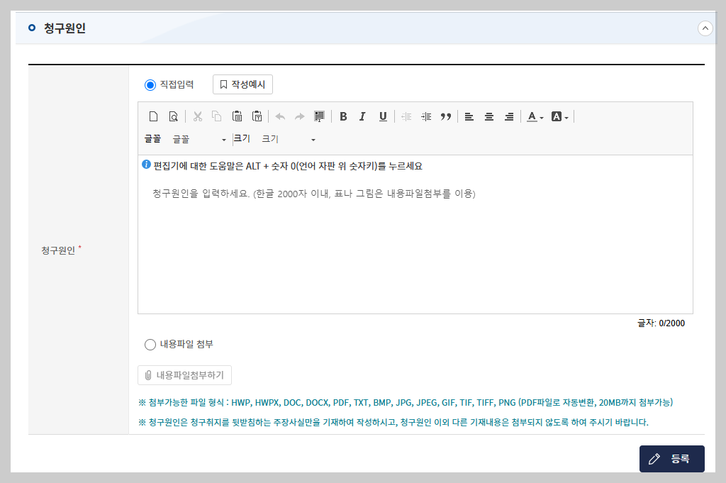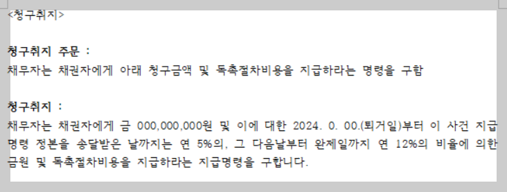 청구취지 주문은 이미 자동으로 입력되어 있는 내용 그대로 사용하시는 것을 추천합니다!