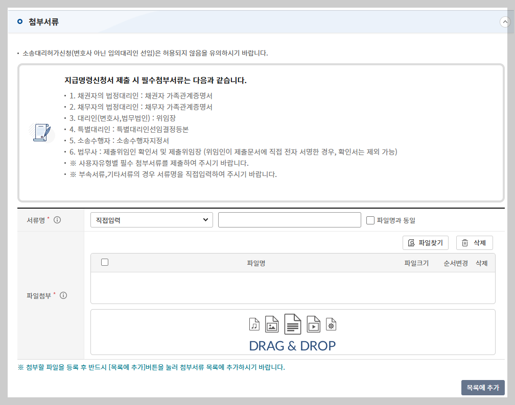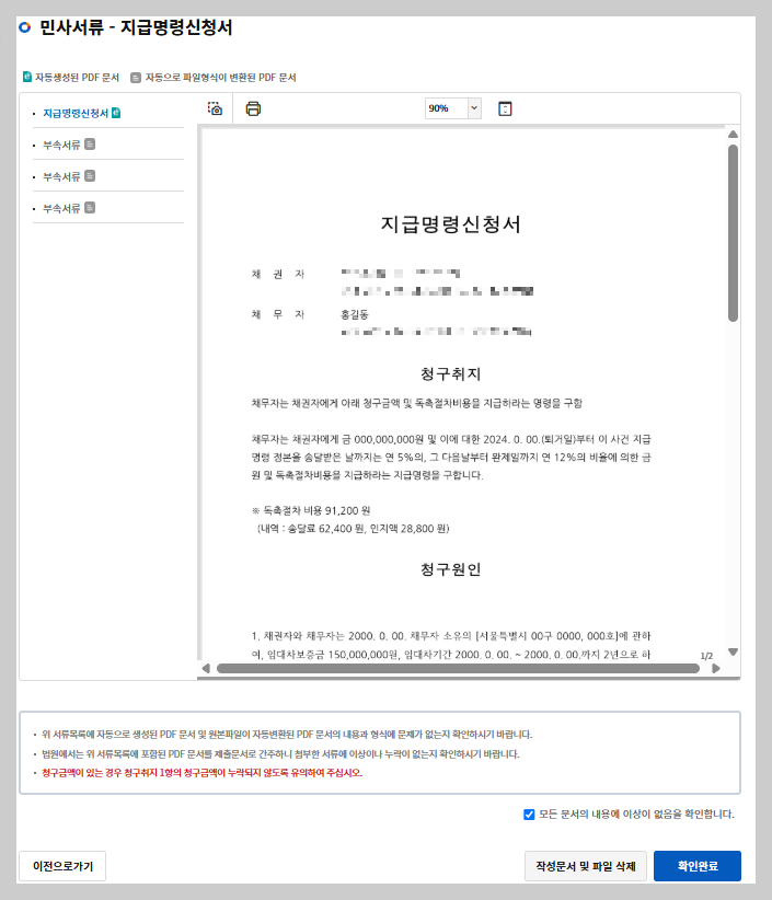 그리고 지급명령 신청 전 내용증명 서류를 보냈다면 그 내용증명 서류도 첨부하여주세요.