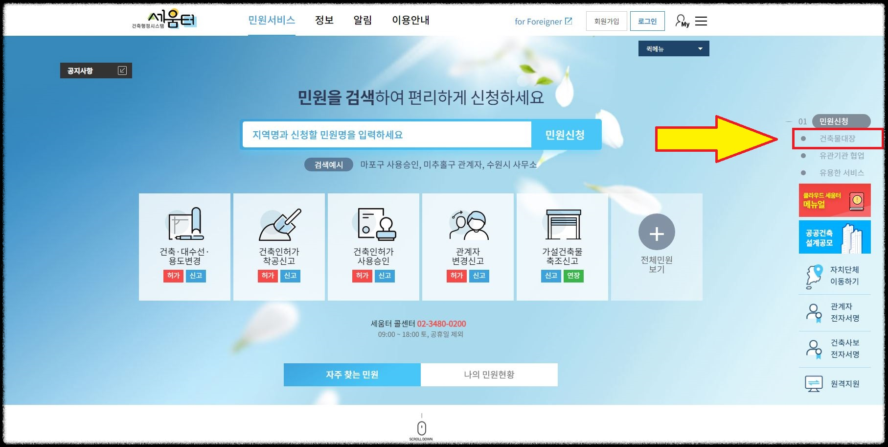 ① 건축행정시스템 세움터 홈페이지(https://www.eais.go.kr/)에 접속합니다.