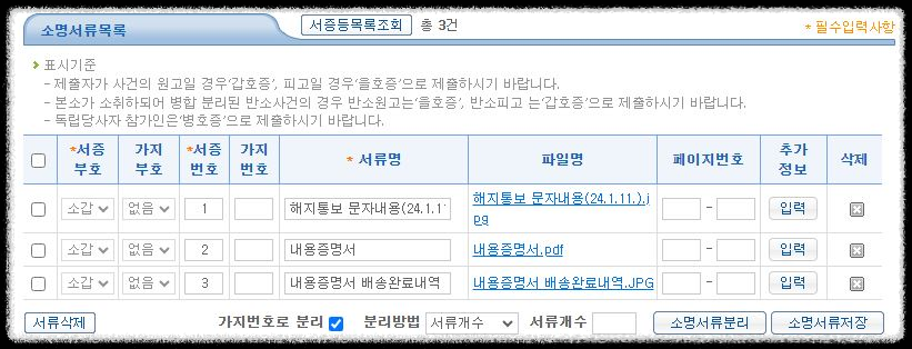 접수증명서가 필요한 경우, 문서제출전 '접수증명신청서 생성' 버튼을 클릭하세요.