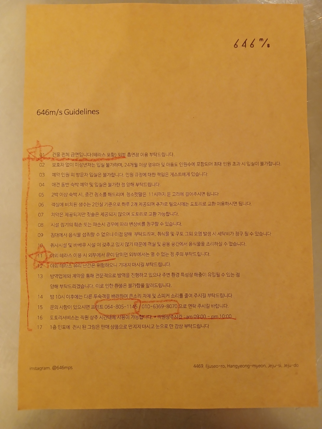 제주도여행 가볼만한곳 숙소 646미터퍼세크 : 숙박시 참고사항