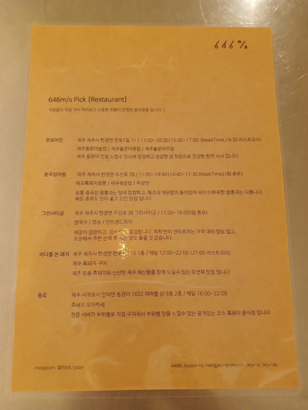 제주도여행 가볼만한곳 숙소 : 646미터퍼세크 ★★★★☆(4/5)