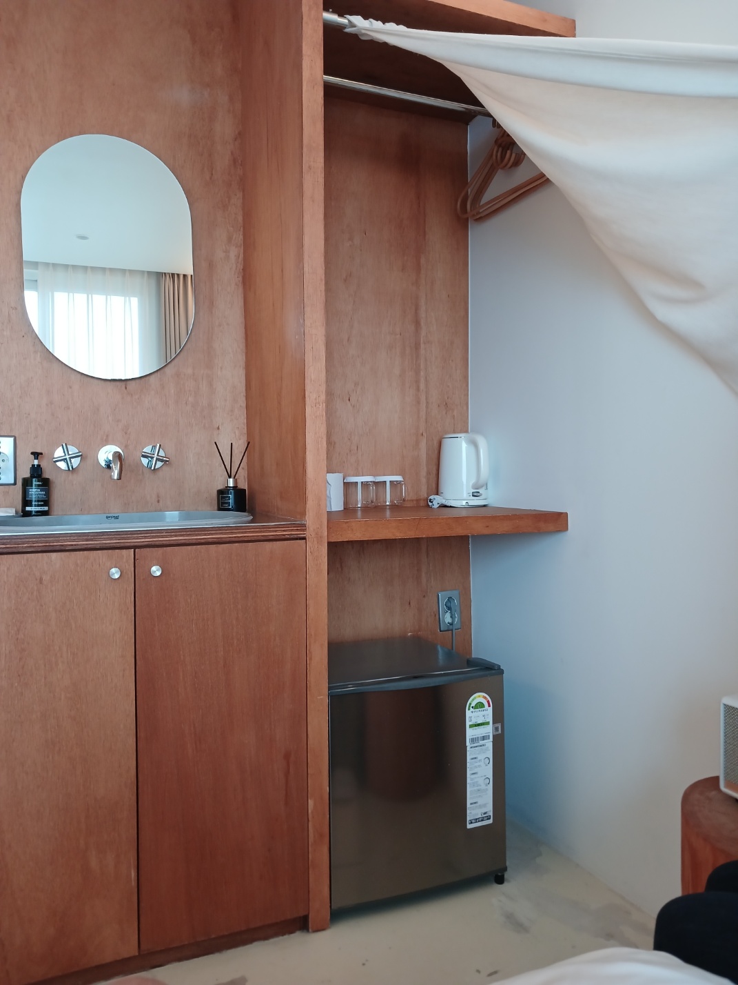 - 침대 프레임 아래쪽이 상당히 날카로워 숙박기간 동안 여러번 다쳤어요.. 전 아예 배개로 그쪽을 막아놨어요.. 숙박하시는 분이라면 참고하세요.