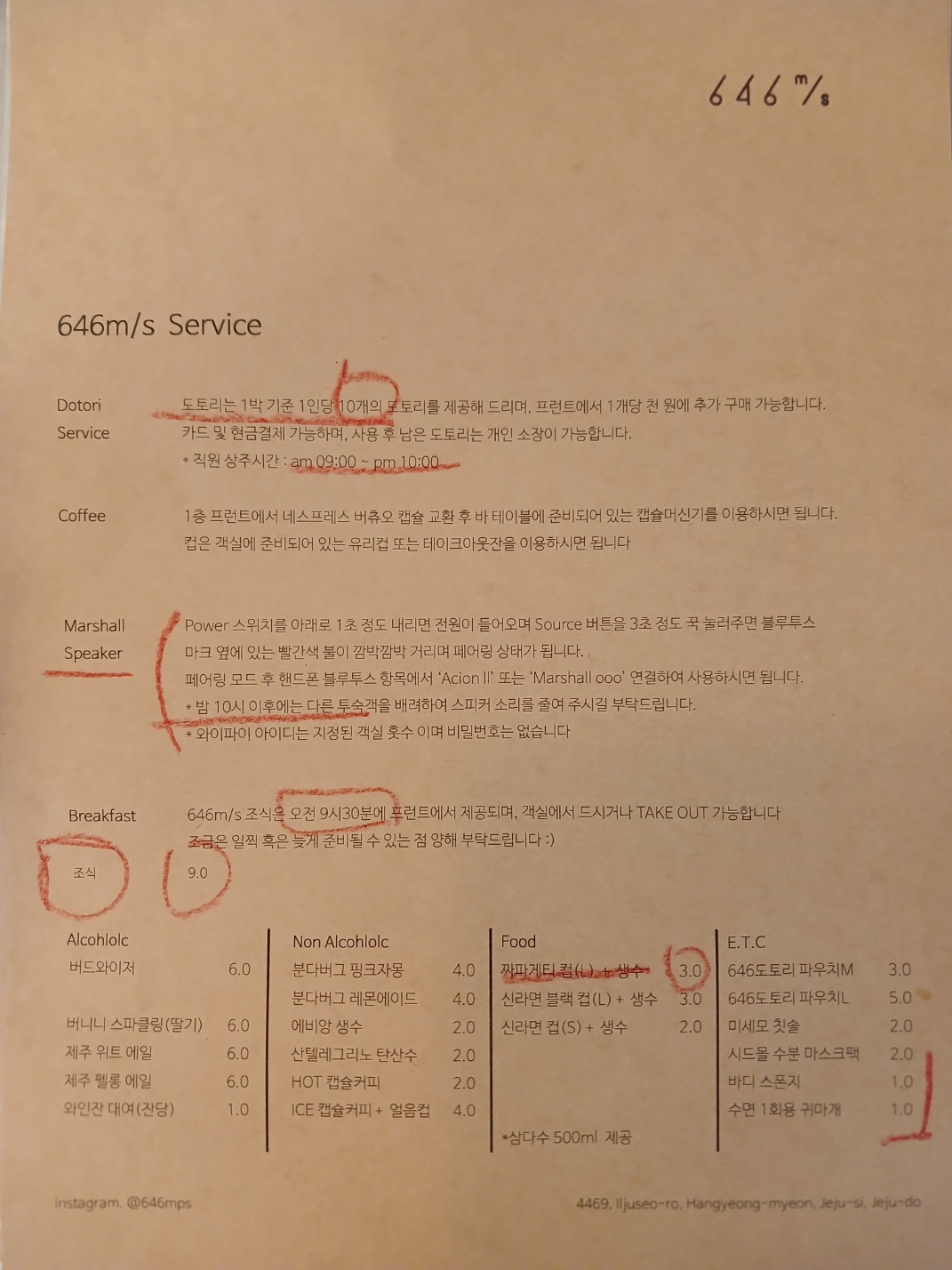 제주도여행 가볼만한곳 숙소 646미터퍼세크 : 숙박시 참고사항