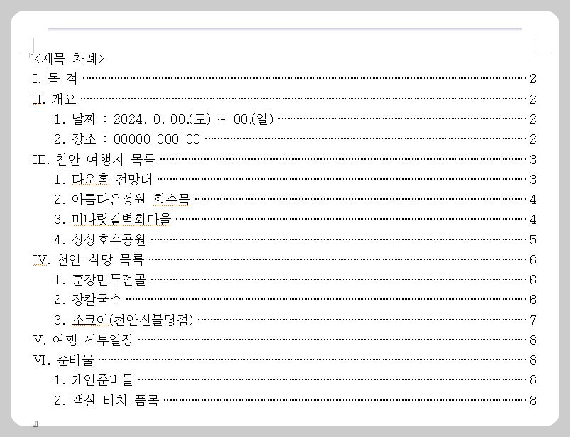 이번 글에서는 한글에서 목차를 만들기 방법 및 한글 점선 만들기 방법을 단계별로 상세히 소개하겠습니다.