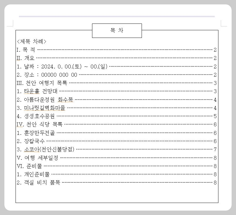 1. 한글 목차 만들기 등 관련 소개할 내용 간략 소개