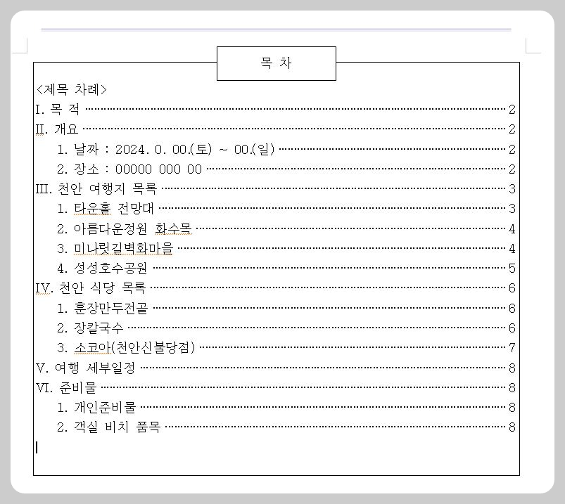 그럼 글상자 안에 한글 목차가 만들어집니다.