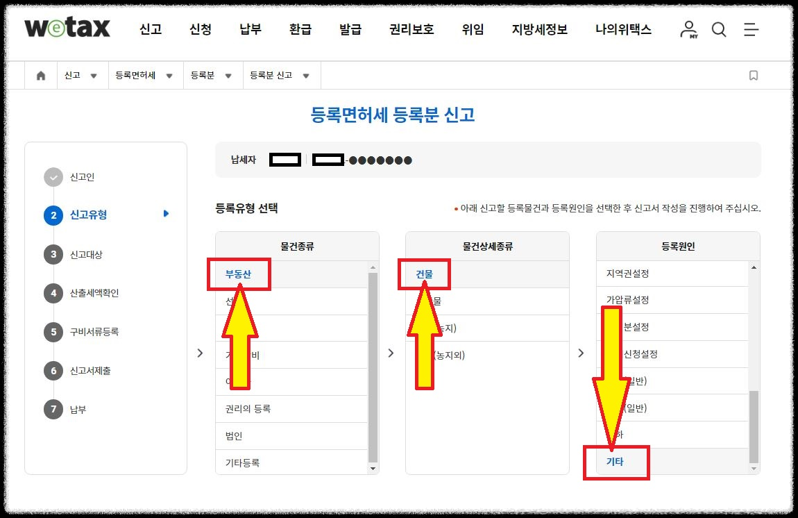 ① 위택스 홈페이지(https://www.wetax.go.kr/main.do)에 접속하여, '등록분 신고'를 클릭합니다.