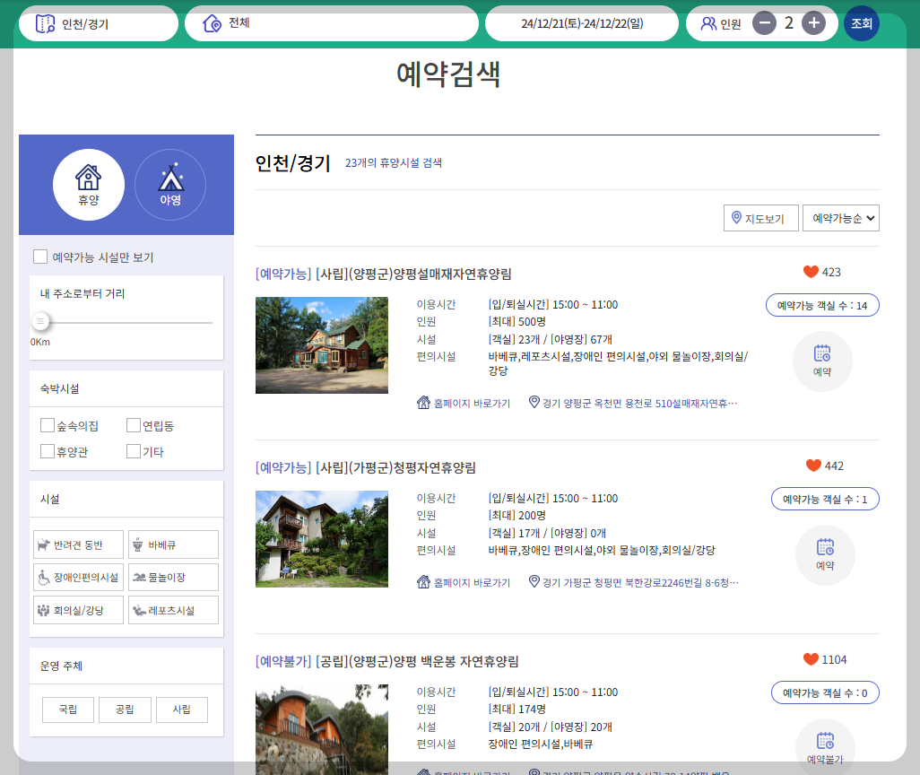 휴양림 예약은 산림청에서 운영하는 ‘숲나들e’ 웹사이트에서 할 수 있습니다.