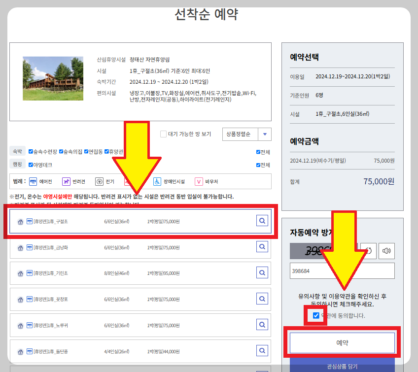 여행객들이 몰리는 성수기에 한정하여 자연휴양림을 예약하는 방법입니다.