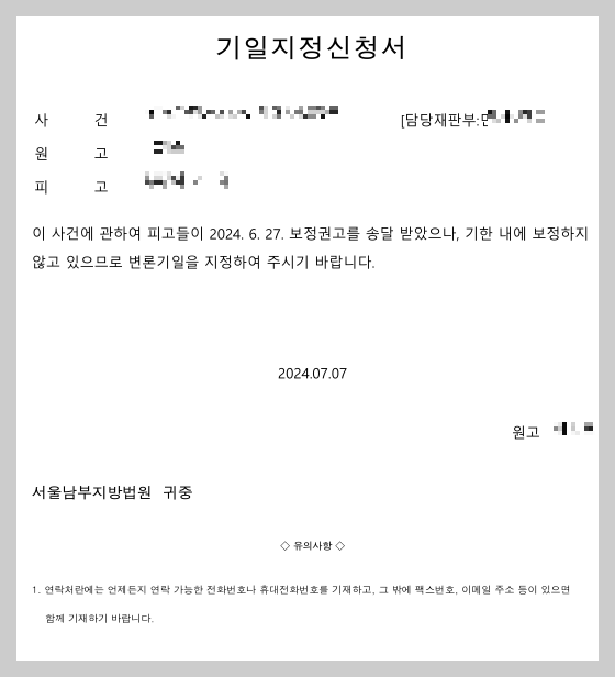 그래서 기일을 어서 지정해달라는 '기일지정신청서'를 제출 했습니다.