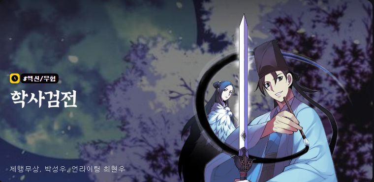학사와 검술이 결합된 독특한 설정의 웹툰입니다. 학문과 검술을 모두 다루는 주인공이 성장해 나가면서 펼쳐지는 이야기가 중심입니다. 글로써 무를 표현하고자 시작했지만 이제는 무 그 자체가 되어버린 주인공의 이야기가 감상 포인트입니다.