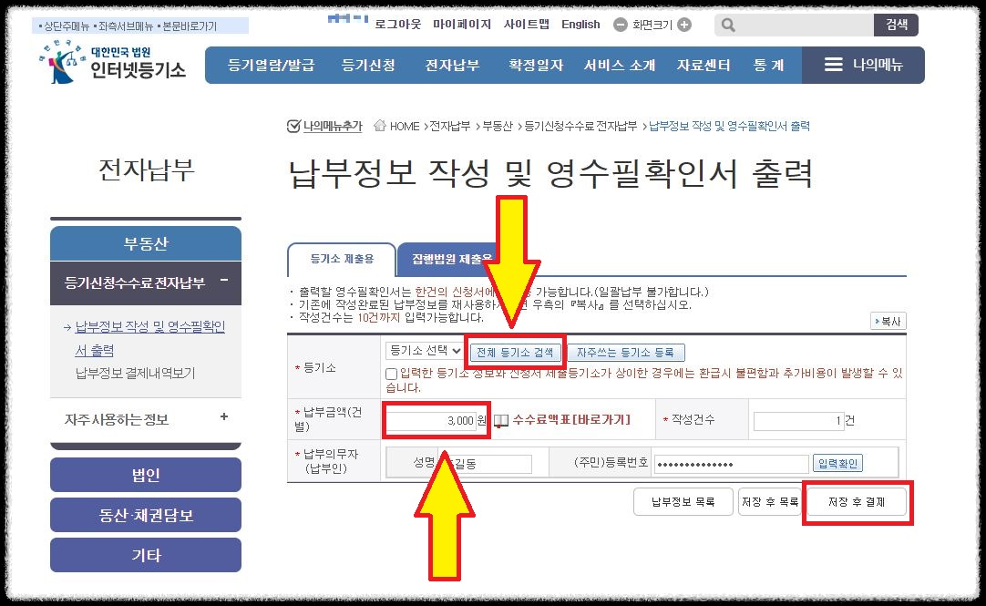 등기수수료 납부