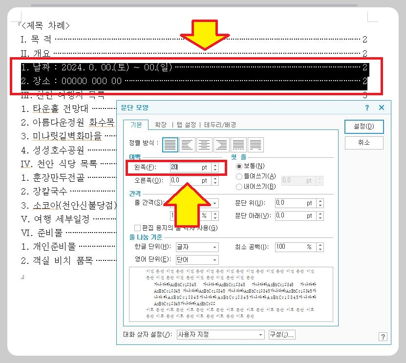 한글 목차 자동 만들기 & 점선 만들기 : 단계별 가이드
